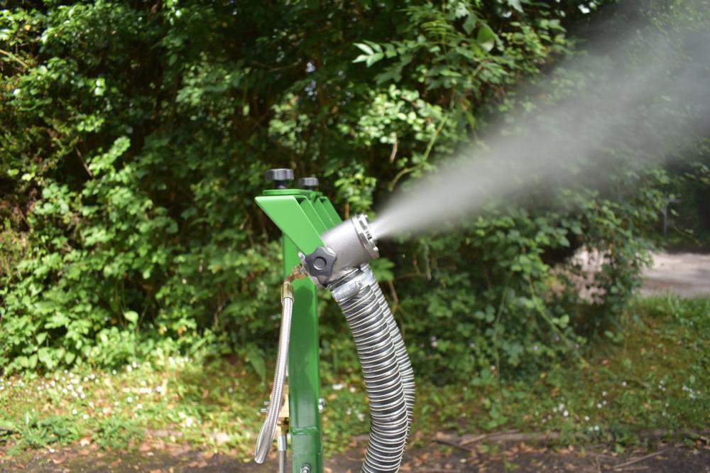 - مروحة نفخ قوية تنتج تدفق هواء بمعدل 180 م³/ساعة لضمان توزيع مثالي للرذاذ.