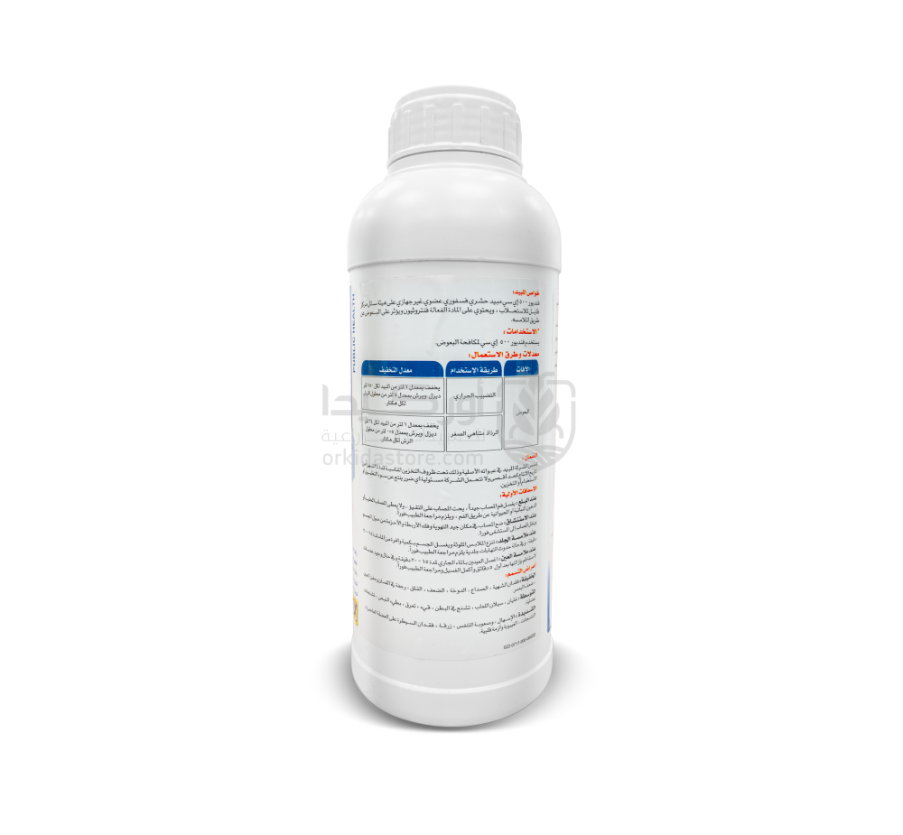 - للرش الحراري: يُخفف 1 لتر من المبيد في 150 لتر ديزل، ويُستخدم مع أجهزة التبخير الحراري.