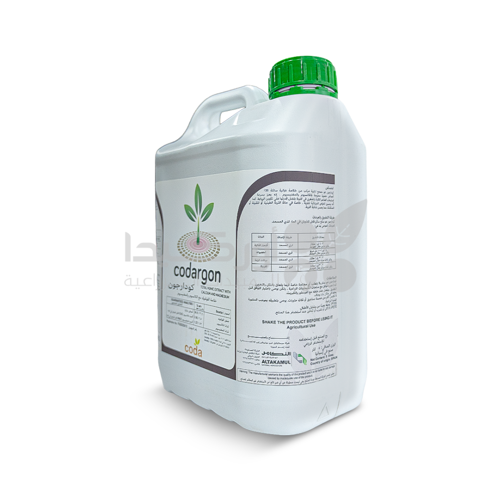 • كودارجون هو سماد عضوي سائل متطور يحتوي على خلاصة الهيوميك الطبيعية مع الكالسيوم والمغنيسيوم، يعمل على تحسين خصوبة التربة وزيادة نشاط الكائنات الحية الدقيقة داخلها. يساعد على رفع كفاءة امتصاص العناصر الغذائية ويقوّي نمو الجذور، مما ينعكس إيجابًا على قوة النبات وجودة المحصول. يُستخدم بفاعلية خاصة في الأراضي ذات الملوحة العالية أو التربة الفقيرة بالعناصر الغذائية لتحسين البنية الفيزيائية والكيميائية للتربة.