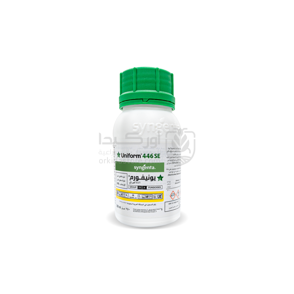 - يونيفورم 446 إس إي مبيد فطري جهازي علي هيئة مركز معلق يحتوي على المادة الفعالة ميفينوكسام 124 غرام/لتر + أزوكسيستروبين 322 غرام/لتر.