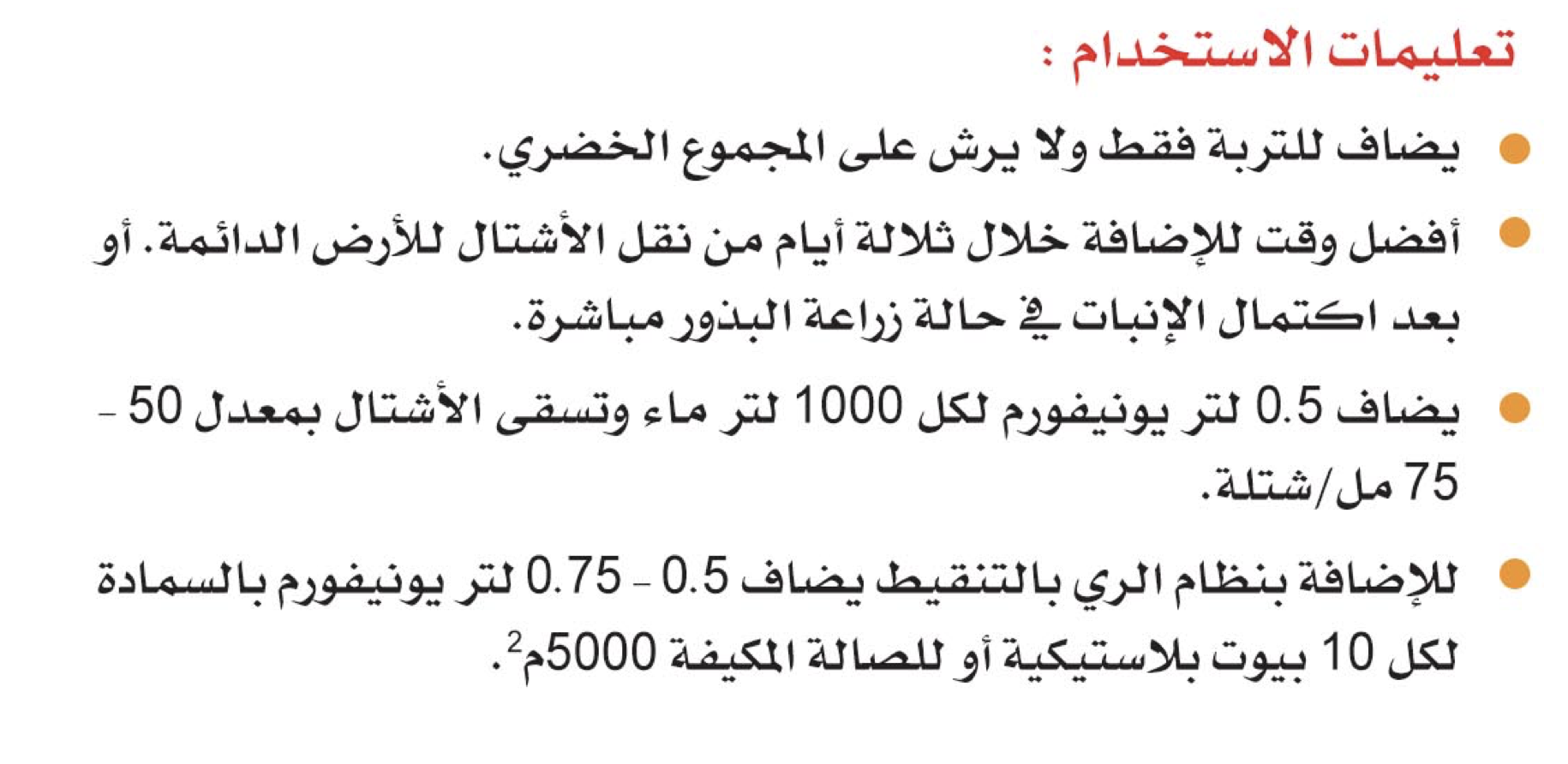 - يُفضل استخدامه بعد مرور ثلاثة أيام من نقل الشتلة.