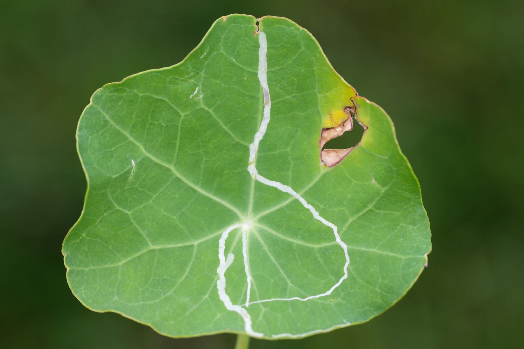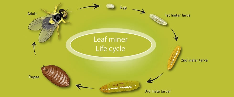 - اليرقة: تحفر أنفاقًا داخل الورقة وتتغذى على العصارة النباتية.
