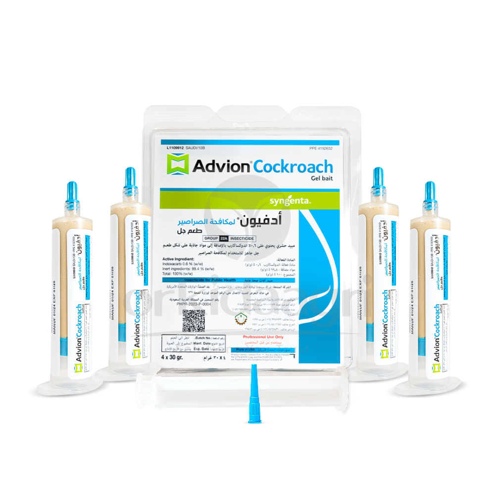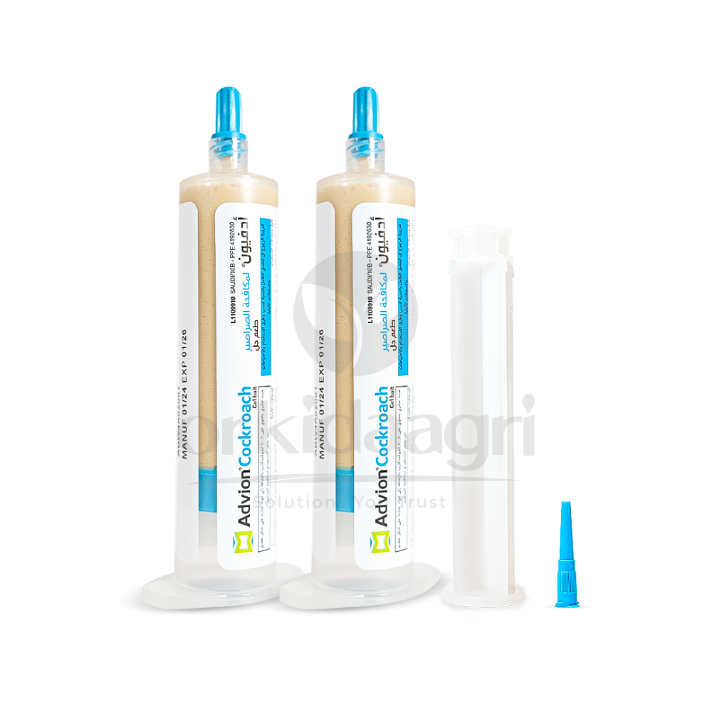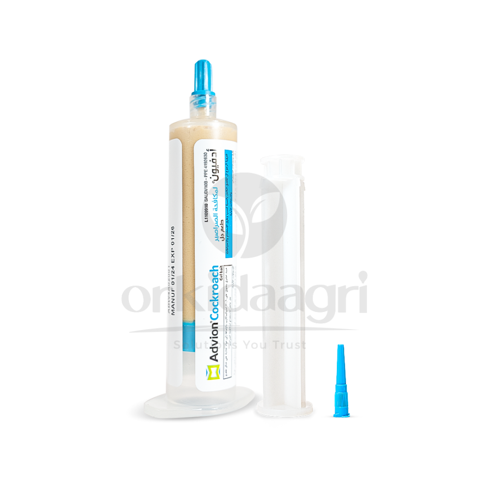 - Adfion Cockroach Control Gel is a ready-to-use, professional insecticidal gel bait designed to eliminate various cockroach species both indoors and outdoors. It contains the active ingredient indoxacarb at a concentration of 0.6% , which is biologically activated within the cockroach's body by natural enzymes, resulting in a potent effect after ingestion. The gel features a highly attractive, non-repellent formula. Cockroaches feed on it and then return to their hiding places, transferring the active ingredient to other members of the colony. This is known as the "kill trail" effect, which helps to reduce infestations overall and eliminate hidden breeding grounds. The product is easy to apply, has a stable gel after application, and is odorless, making it a reliable choice for professional cockroach control programs in homes, commercial establishments, and food processing facilities.