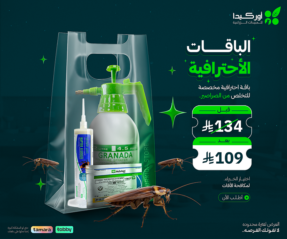 A package specifically designed to treat small cockroaches in small homes such as apartments, kitchens, and bathrooms only, and recent infestations of the insect. The package contains safe and effective pesticides for treating German cockroaches, such as pesticides containing the active ingredient indoxacarb, which works by contact and eliminates the cockroaches and eggs.