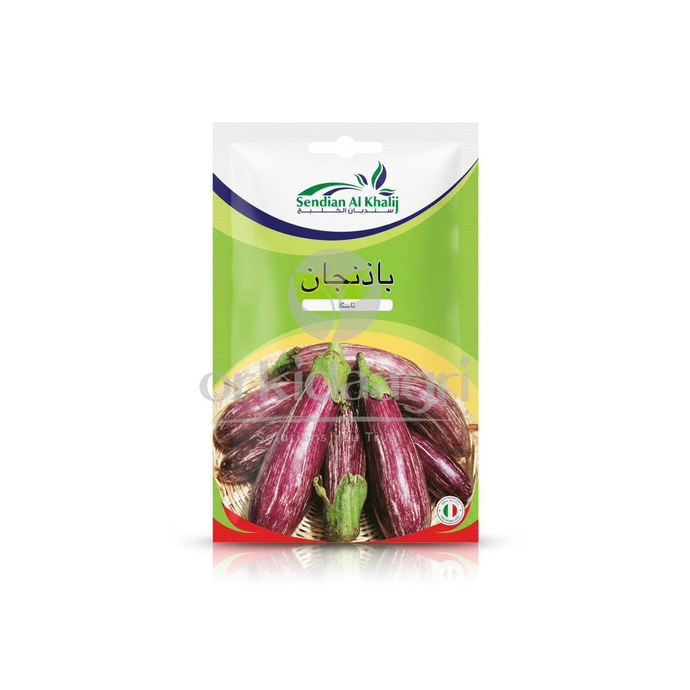 - The Tasca eggplant variety produces long, oval, purple fruits with white stripes, characterized by their good taste and firm texture. This non-hybrid variety is suitable for open-field cultivation and is an excellent choice for both home and commercial production thanks to its uniform growth and high-quality fruit.