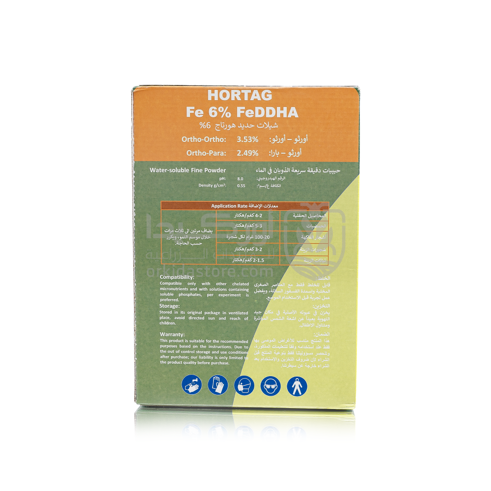 - Hortage Iron Chelate Fe 6% is an advanced fertilizer that effectively treats iron deficiency in plants and prevents its appearance, helping plants achieve healthy growth and high productivity.
