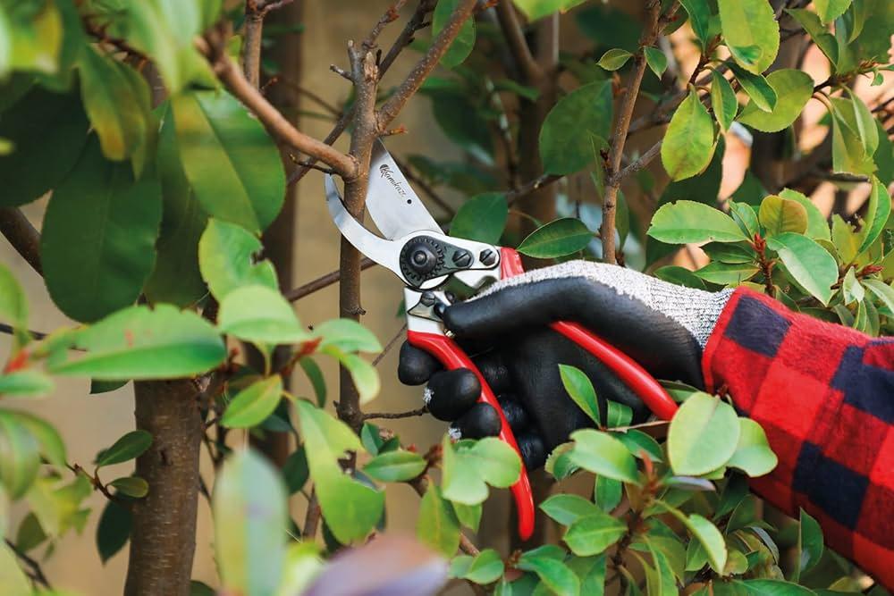 - A professional, medium-sized pruning shear , measuring 21 cm in length , made of hardened steel for durability and longevity. It efficiently and smoothly cuts green branches up to 25 mm long. The handle is made of aluminum with a plastic coating for comfort and stability. Equipped with a built-in wire cutter for added versatility, it is an essential tool for plant care in farms and gardens.